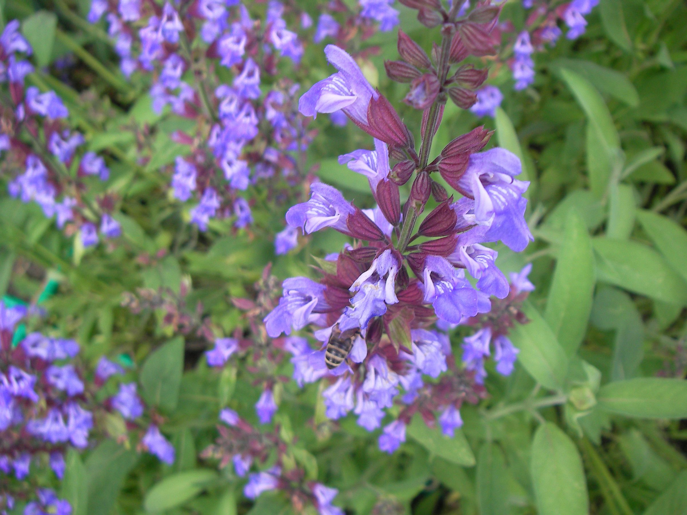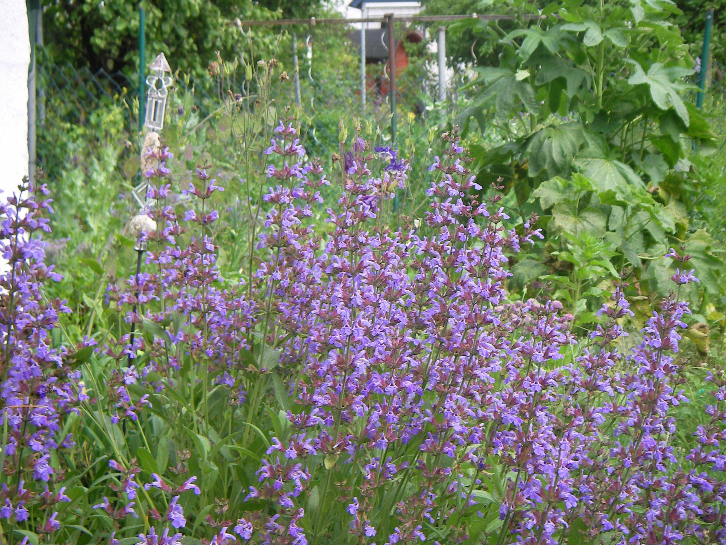 Ein Kräuterbeet mit blühendem Lavendel, Thymian und Borretsch und Dill liefert Futter auch für die Bienen und Gewürz für die Küche.